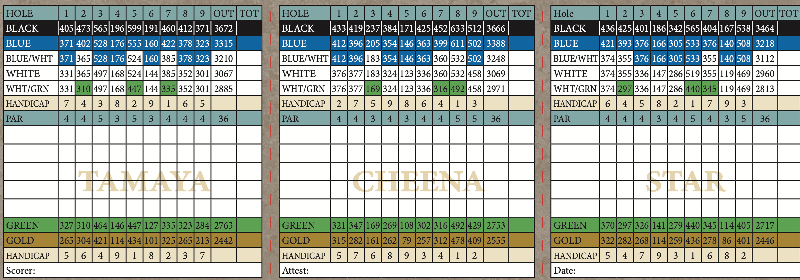 3 - 9 Hole Courses (Tamaya, Cheena & Star)